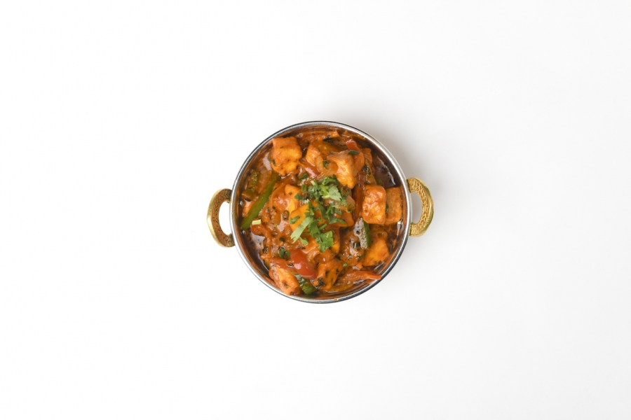 Fromage maison cuit avec piments verts, piments verts forts, oignons et tomates